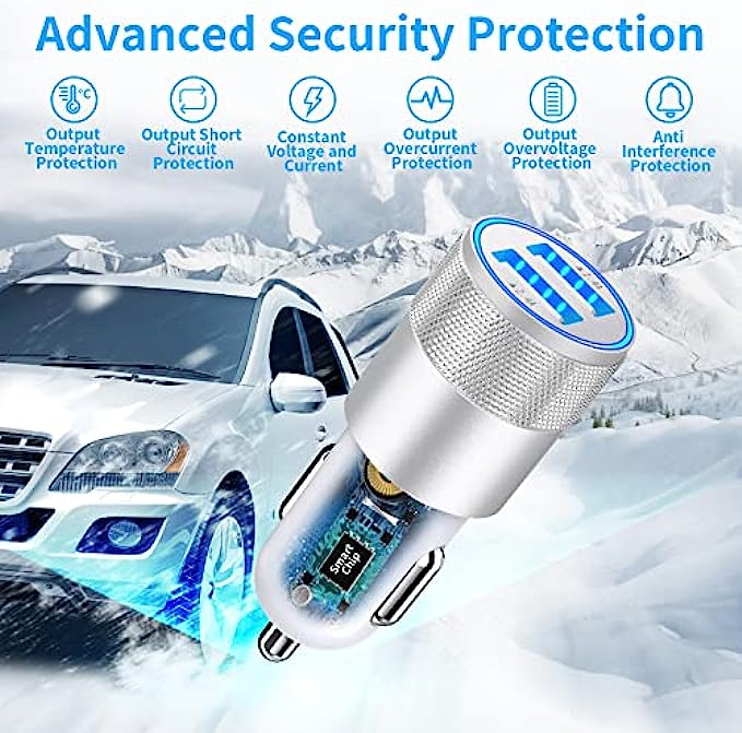 【Premium Materials and Design】: The housing made of an aluminum alloy + ABS fireproof materials offers better scratch resistance, heat dissipation, attractive design, and long service life, suitable for the most untouched vehicle interiors. Gold-plated tubing reduces heat during charging while maximizing charging speed and efficiency. The ring LED indicator can help you to find the charging ports easily in the dark, Easily fits in a car cigarette Lighter socket with limited space.