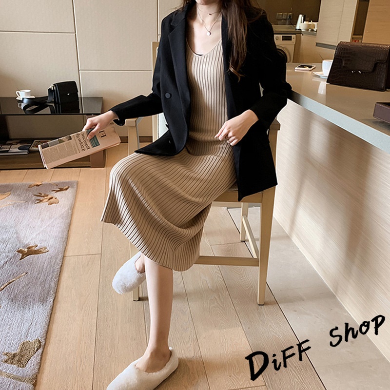 【DIFF】韓版氣質顯瘦針織背心 連衣裙 長裙 洋裝 女裝【S176】