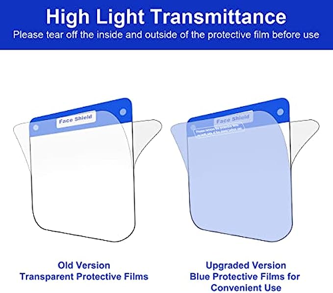 【HD Transparent & Anti-fog】The safety face shield is features with high light transmission which is up to 99.8%, and it's really fog resistant. It's perfect to indoors and outdoors use to protect you to the greatest extent without eyesight matters(Note: Please remove the protective cover oncover on both sides of the mask before use).