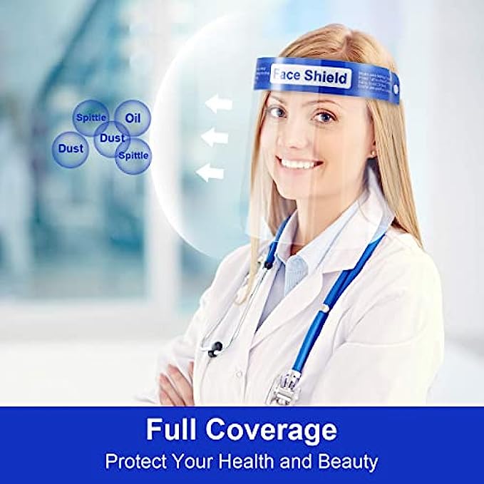 【Environment Friendly & Premium Quality】 We always insist on using premium materials to produce higher-quality products. This face shield is made of recyclable waterproof PET (polyethylene terephthalate) to effectively isolate saliva and fully protect the face from sprays, splashes, drops, dust, oil, smoke and etc.