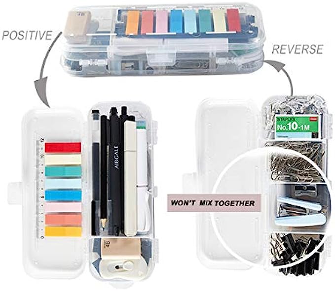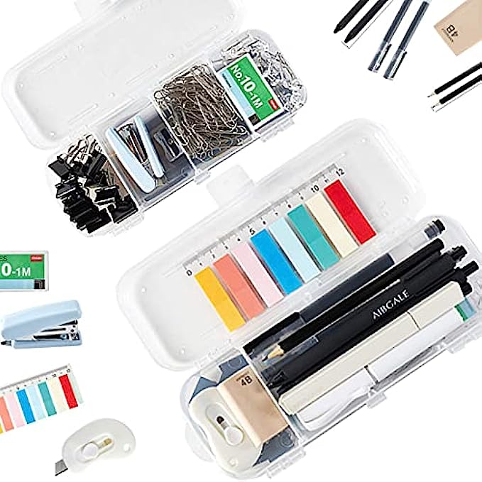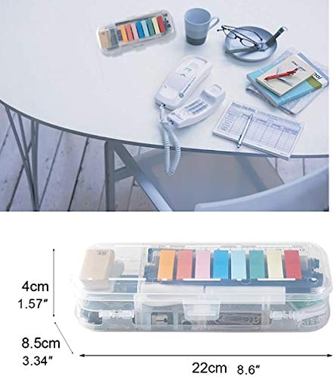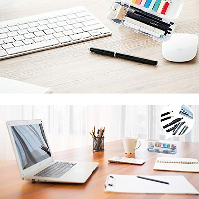 【EASY TO CARRY】- Our office supplies are packed in a reusable transparent plastic organizer case with 6 separated compartments, easy to carry and store when traveling or Outing. This small office supplies supply you with a matching set of everything you need for your work space.