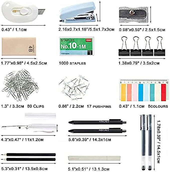 【SUPER VALUE SETS】- Office desk accessories set includes 1x Desktop Organizer, 8x Page Markers, 1x Scissor, 2x Ball Pens, 2x Pens, 2x Pencils, 1x Highlighter, 1x Small Cutter, 1x Erasers, 12x Binder Clips, 1x Sharpener, 80x Paper Clip, 17x Clear Push Pins, 1x Stapler, 1000x Staples.