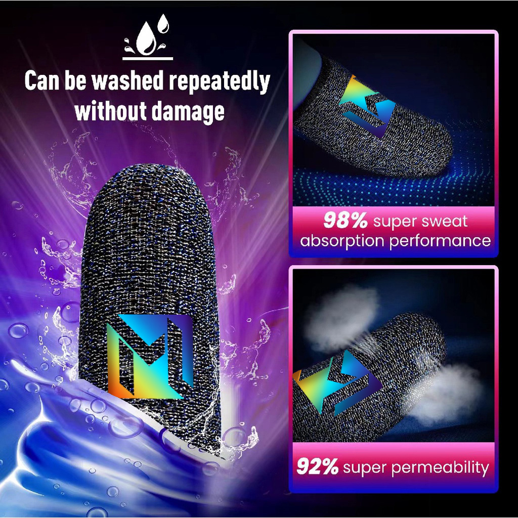 2024 BlueWow【Mobile Legends】Gamers Sweatproof Gradient Gloves Mobile Finger Sleeve Touchscreen Game Controller Phone Gaming PUBG
