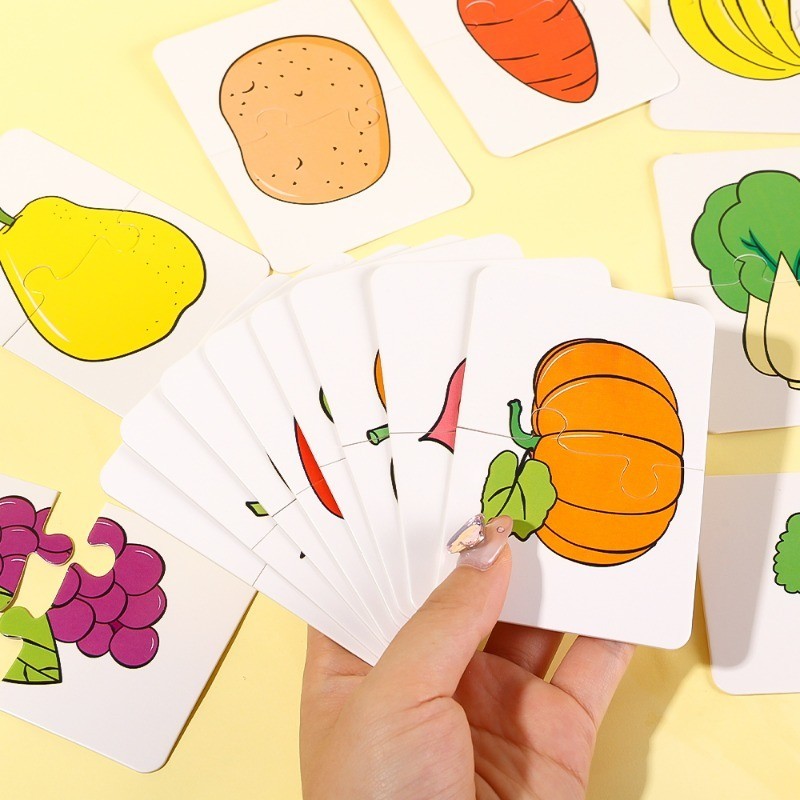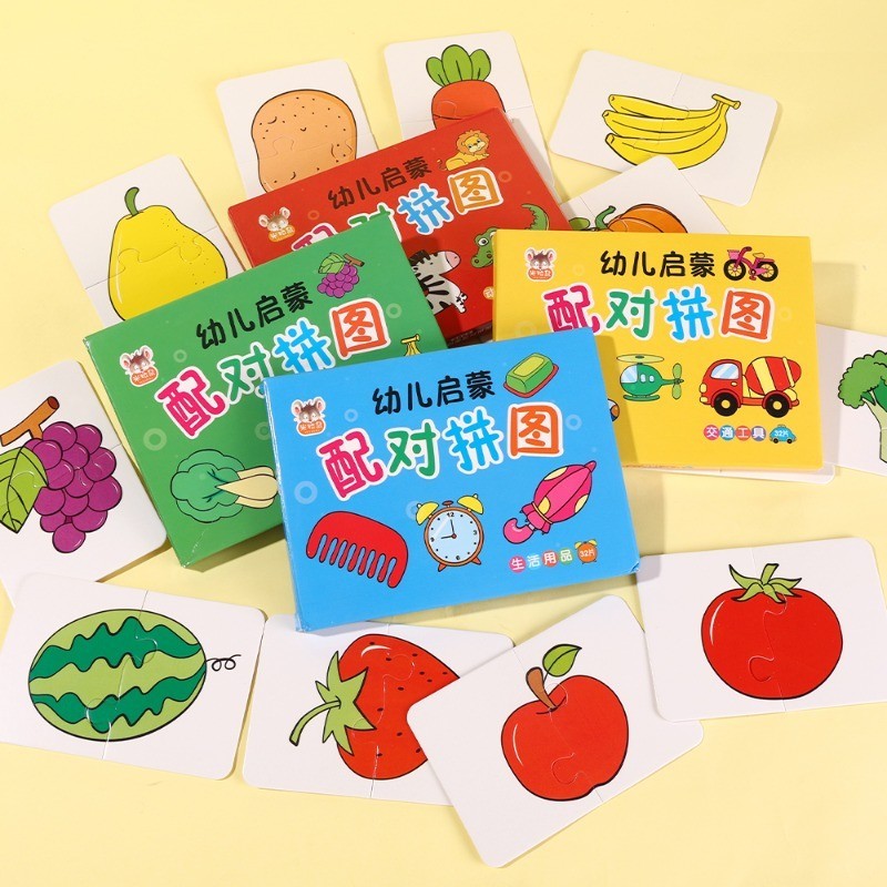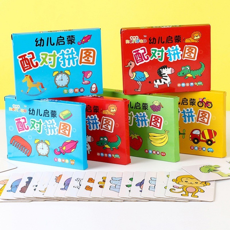 32Pcs Toddler Matching Card - Early Montessori Education Puzzle Toy - Cartoon Animal Fruit Truck Pattern - Graph Card Matching Game - Children Shape Cognitive Training Jigsaw