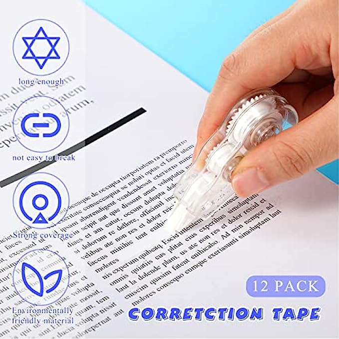 Serving You Long: each correction tape is about 0.2 inches in width, 158 inches long, enough for you to use for a long time; And each correction tape is equipped with a lid, you can cover it with the lid when you don't use, easy for you to store and manage