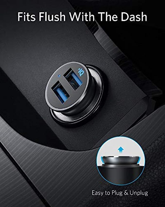 Anker Car Charger, Mini Aluminum Alloy 24W Dual USB Car Charger, PowerDrive 2 Alloy Car Adapter with Blue LED for iPhone12/11/XR/Xs, iPad Pro/Air 2/Mini, Galaxy (Not Compatible with Quick Charge)