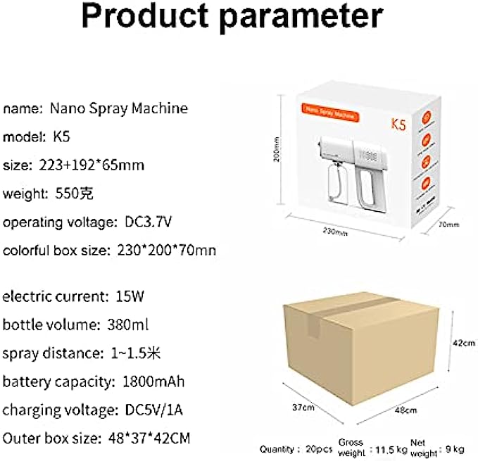 Wireless handheld sanitizer spray machine: The sanitizer spray machine used by cleaning professionals yet easy enough to be used by small business owners and homeowners who want to clean their own spaces. The wireless handheld design can make you use it more comfortable and convenient without the inconvenience of rope traction.