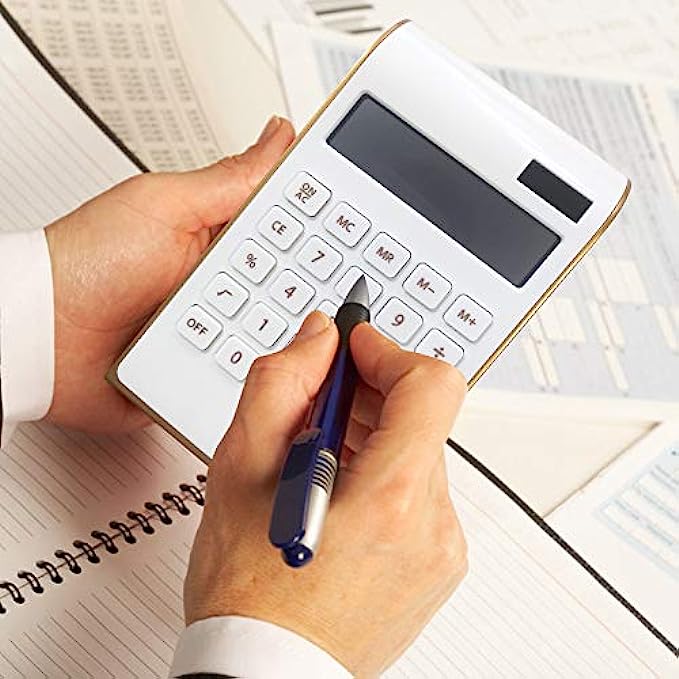 Elegant and slim design: It has a sleek and stylish design, good-sized buttons, Large 10-digit LCD display, Pretty big one but still very light weight.