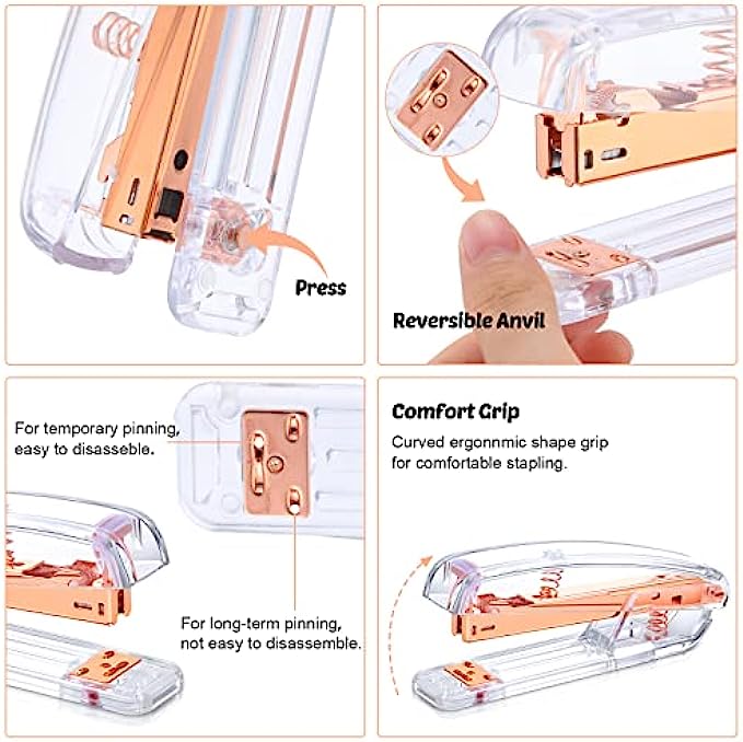 Quantity Material: the body of the clear stapler is made of ABS and stainless steel, which fits for the standard staples 24/6 or 26/6, are sturdy to use and not easy to deform; The binder clips and diamond ballpoint pens are anti rust and impact resistant, so they can serve you for a long time