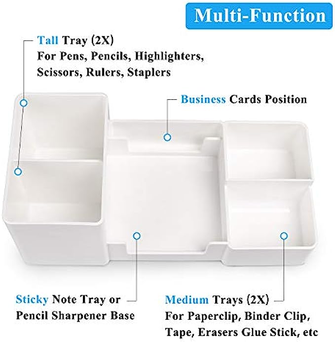 ★ GREAT OFFICE ASSISTANT - Our office plastic desk organizer with divided 6 compartments that will organize pens, pencils, rules, marker, clips, scissors, sticky notes, name cards and other office accessories separately;