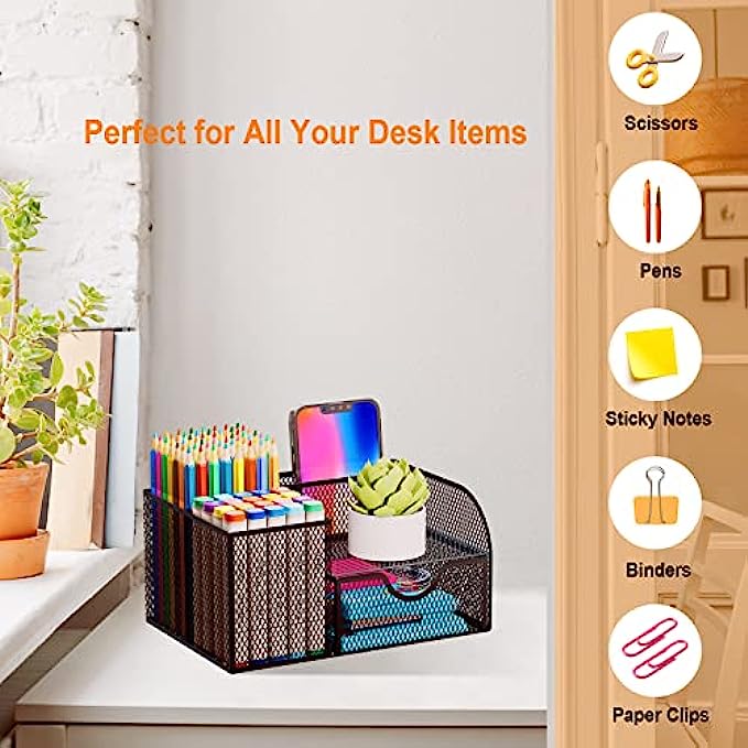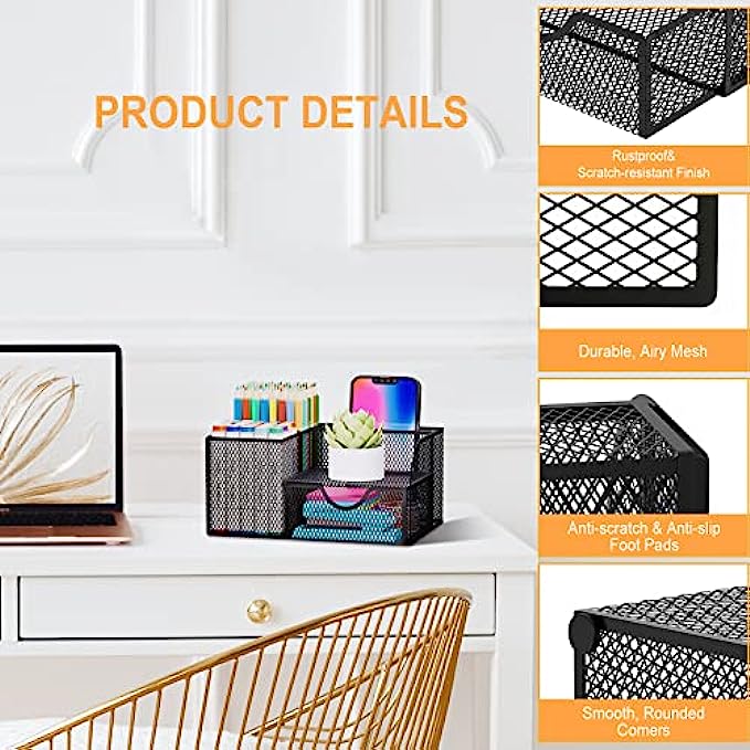 DURABLE MATERIAL: office supplies organizer is made of sturdy mesh metal with a smooth durable rust-resistant ABS coating, and smooth rounded edges will ensure the organizer is safe to use for everyone
