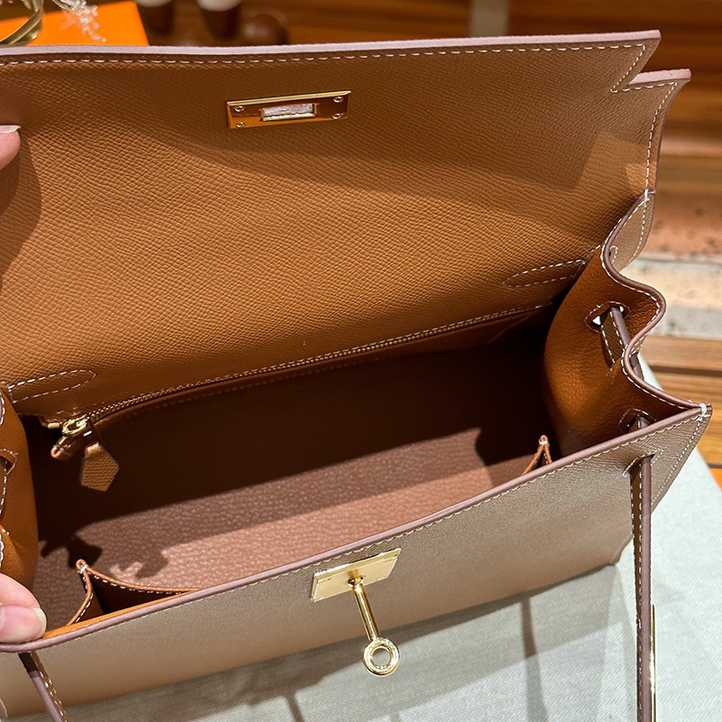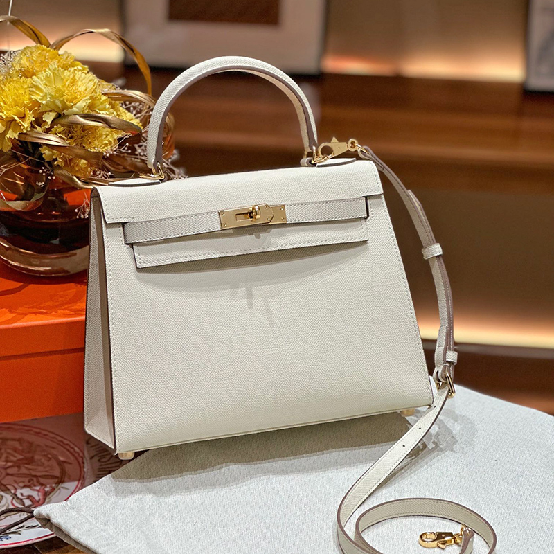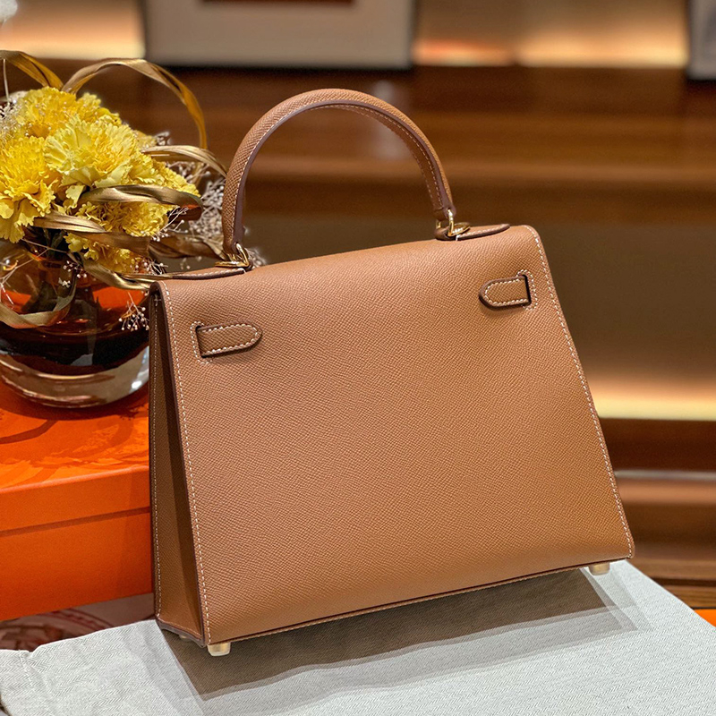Donnain Handmade Stitching Luxury Epsom Calfskin Genuine Leather Women Desginer Handbags for Office Lady Fashion Gold Hardware Lock Closure 28CM