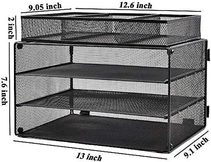 STURDIER & DURABLE: This 3 Slot paper organizer tray is made of lightweight metal mesh steel construction and environmental powder coat.