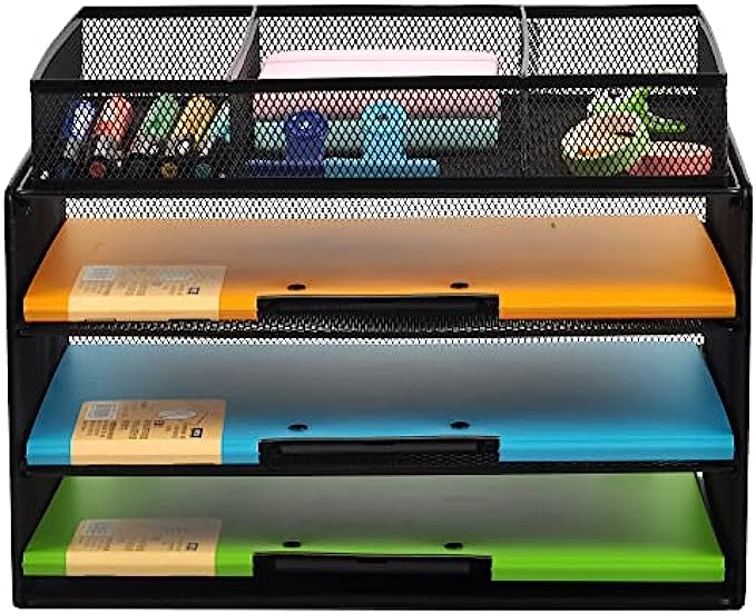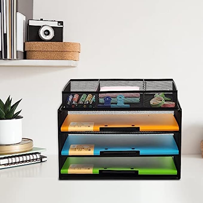 3-TIER STACKED SHELF: Keep your space organized and clutter free. Open design lets you identify the contents of each compartment quickly. Perfect solution to keep your desk organized in a different new way.