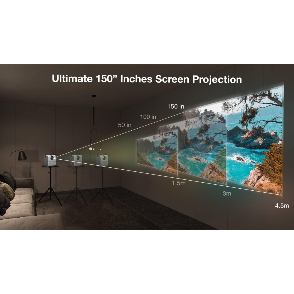 HD Smart Android Projector | Wifi/Bluetooth/HDMI/USB | Built in Netflix, Youtube, Disney Plus, Prime video, IQIYI