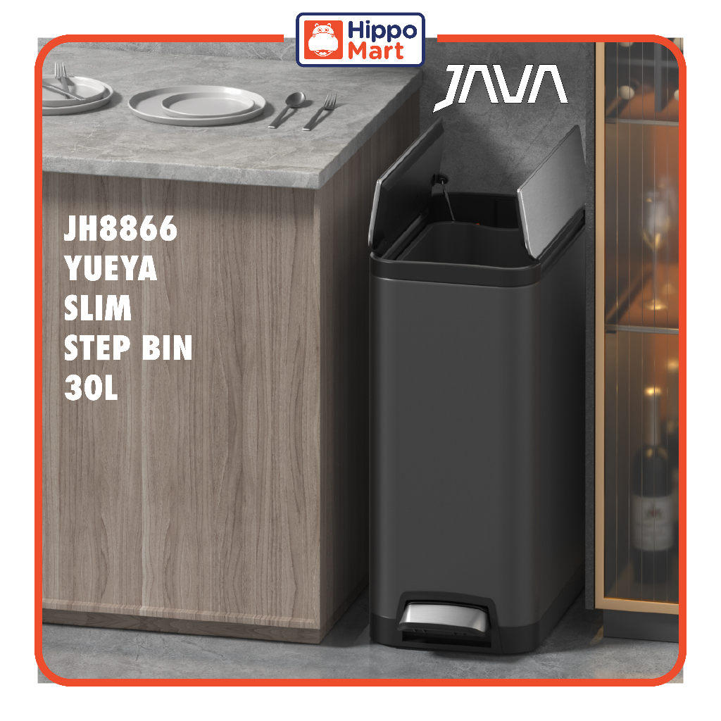 JAVA YUEYA JH8866 Slim Step Bin 30L with Soft Closing [Multiple Color] Trash Bin, Dustbin, Dustbin for Kitchen, Dustbin