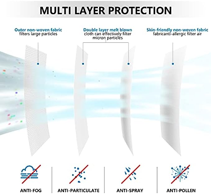 【Perfect 3D Design】According to the human face, the 3D shape is designed with ergonomic to ensure the face mask can completely tights around face, mouth, nose and chin. You never need to worry about fogging your glasses and the Inserted nose clip falling off.