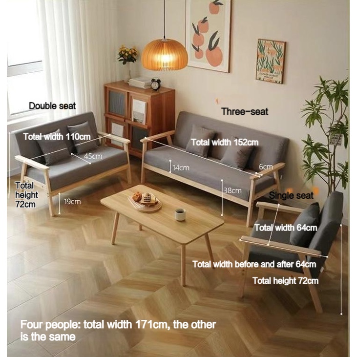 Modern minimalist living room solid wood fabric sofa removable and washable