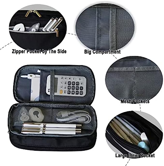 High Quality: This pencil case is made of nylon + PU material, large storage, portable, extremely durable, anti-scratch, dirt resistant, water proof and sturdy zippers for easy use.