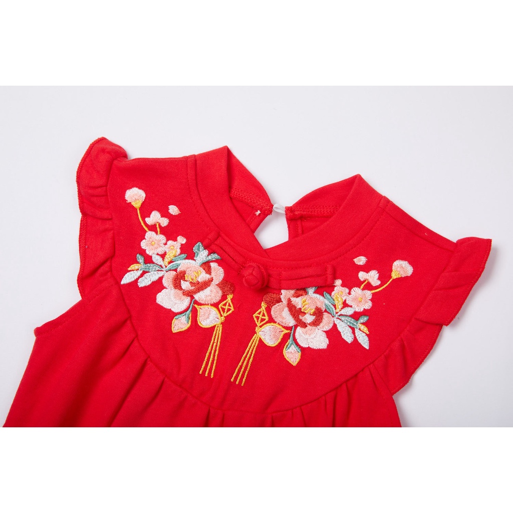 Racial Harmony Day Costume Baby Girl Cheongsam Romper Red w Pink Flowers Chinese New Year Romper CNY Clothes