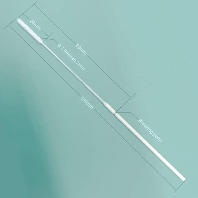 Easy Break point and flexible rod made out of ABS plastic designed for a safe user experience. The swab is 150mm in length with a break point of 80mm.
