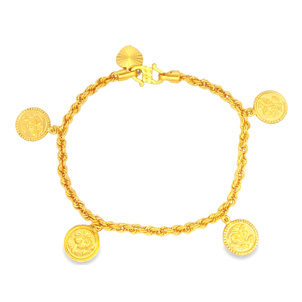 Top Cash Jewellery 916 Gold Dangling Flower Rope Bracelet
