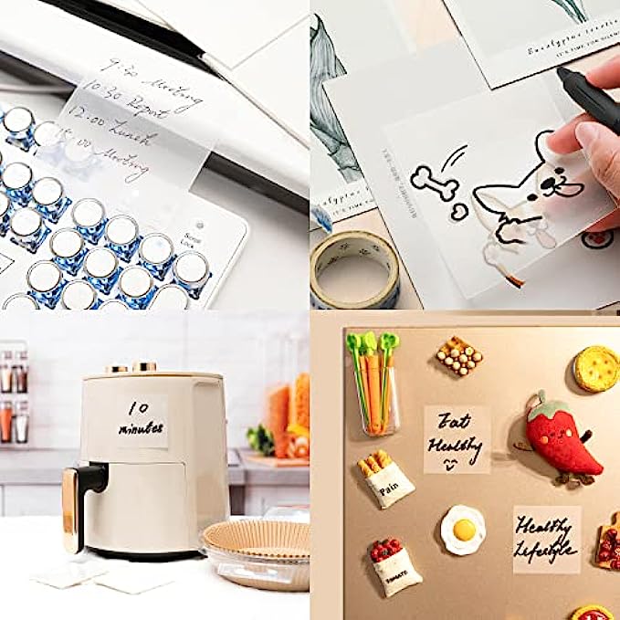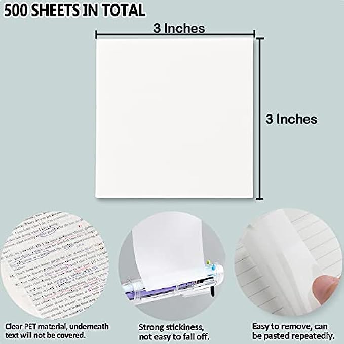 Waterproof Material: Superior PET material, waterproof and durable, prevents ink soak through the clear sticky notes and easy to write on. 10 packs of 500 sheets in total, enough quantity for your various note needs.
