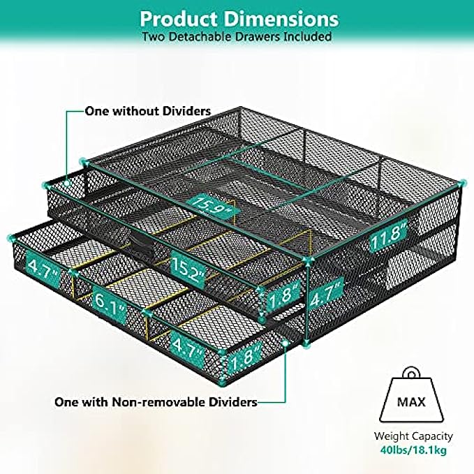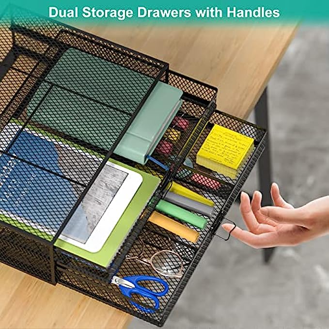 Extra Storage: 2 removable drawers add extra storage space underneath for small office supplies: pens, documents, notebooks, etc.