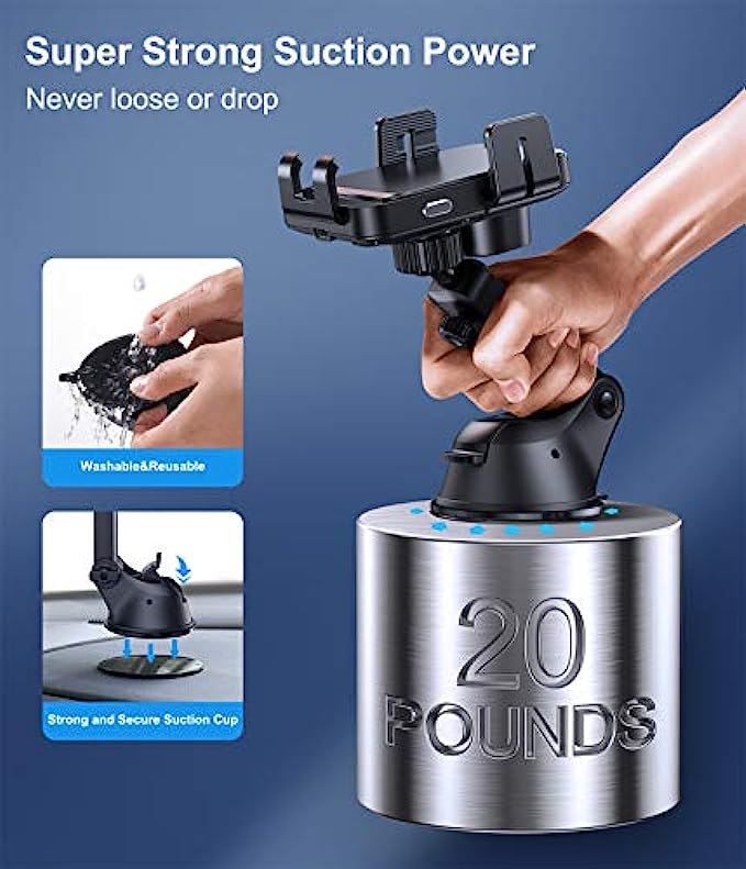 • ? 【Super Stable Base】Joyroom phone mount for car wireless charger's base is equipped with a powerful suction cup and professional 3M adhesive (high temperature resistant). The base's suction cup has been tested thousands of times, it can absorb more than 20 pounds of objects without dropping. Even if passing speed bumps or driving on mountain roads, you don’t need to worry about it falling. In addition, the bracket arm and clip are equipped with silicone pads for anti-slip and anti-vibration.