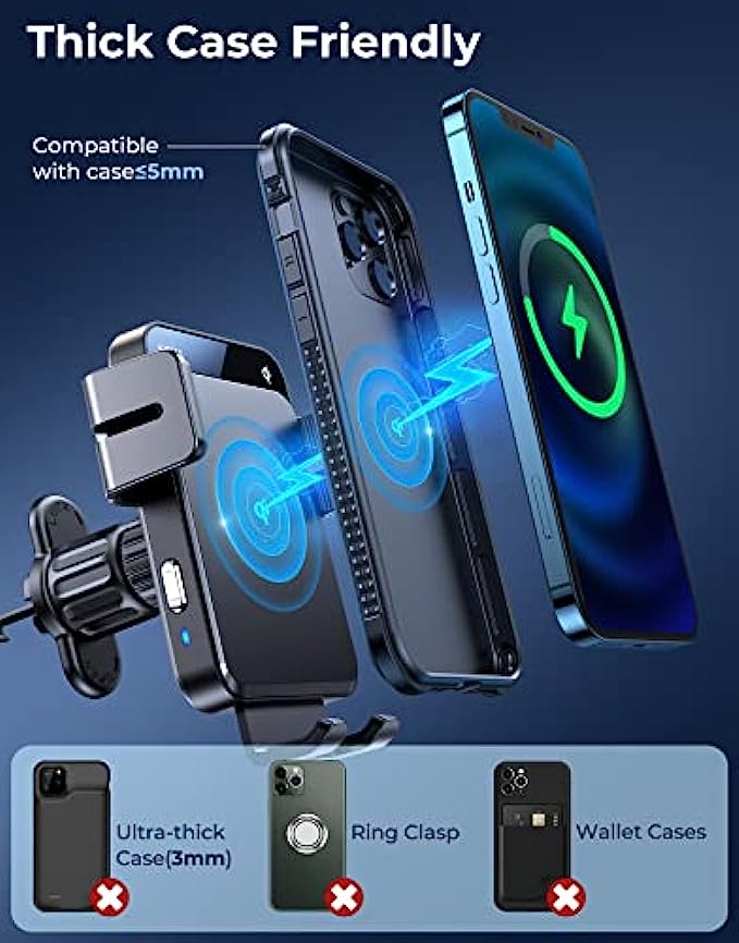 • ? 【Qi Wireless Car Fast Charger】 Qi certificated, the 15W wireless car charger mount is for LG V50/V40/V30+/V30/V40, ThinQ G8/G8S/G7; 10W for Samsung Galaxy S20+/S20/Note 10+/Note 10/S10+/S10; 7.5W for iPhone 13 pro max/13 pro/13/12 Pro/12/11/11 Pro/11 Pro Max /SE /XS /X/XR/8 Plus/8. And other Qi-enabled cell phones with up to 5W standard charging. Note: iPhone 12 Mini is not supported.