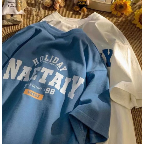 Zaer 短袖t恤 下半身失蹤 美式復古短踢 男女同款 大尺碼oversize 上衣 字母印花 夏季寬鬆落肩休閒 高街