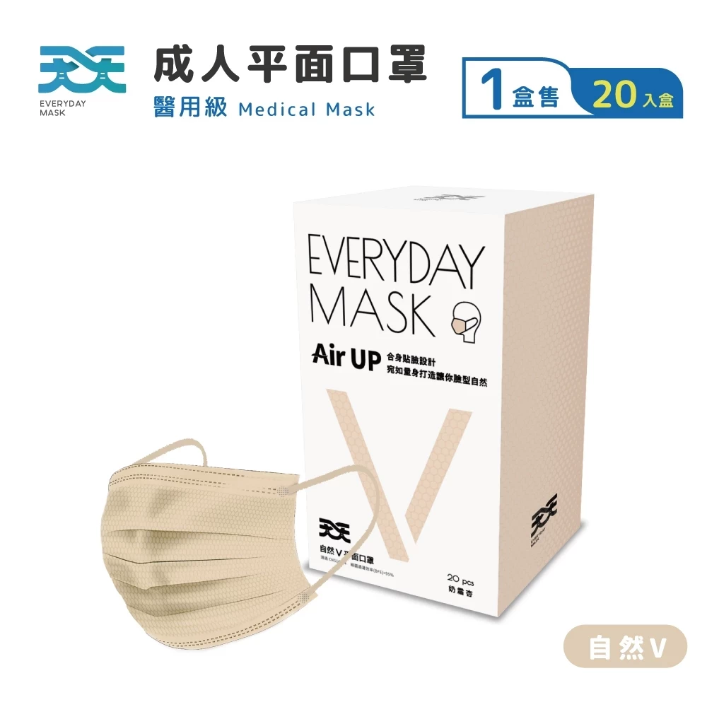 Medical Adult Flat Mask – Light Heart Series (Cream Apricot) – 20 pcs/box | 50 boxes/carton (1,000 pcs Total)
