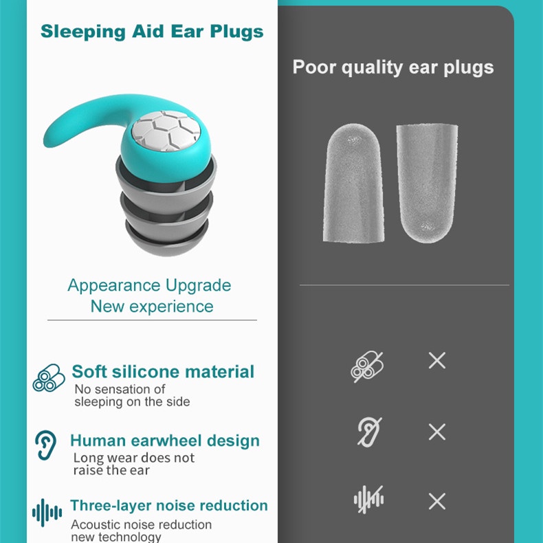 Ear Plugs for Sleeping, Noise Canceling Earplugs, Reusable Silicone Earplugs for Hearing Protection Waterproof EarPlugs Suitable for Sleeping Swimming Studying Traveling