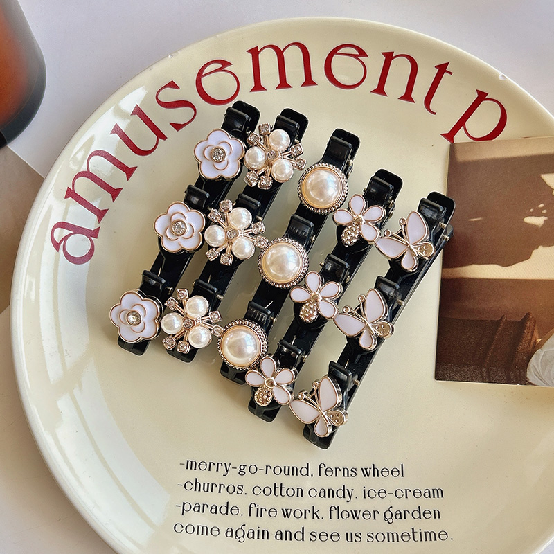 Elegant Temperament Double-Layer Braided Hair Clip Broken Hair Forehead Bangs Tidy-up Handy Tool Butterfly Pearl Side