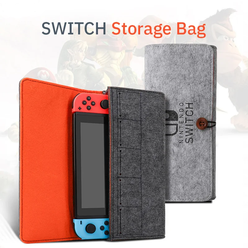 Jomaa Switch Felt Storage Bag Game Console Protective Case Nintendo Switch Multifunctional Game Card Charging Cable Case