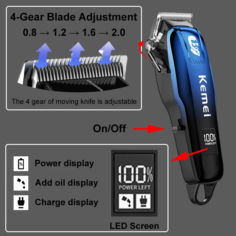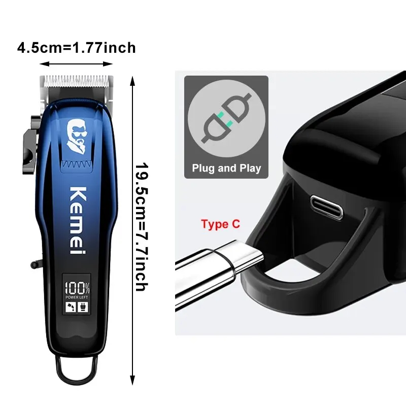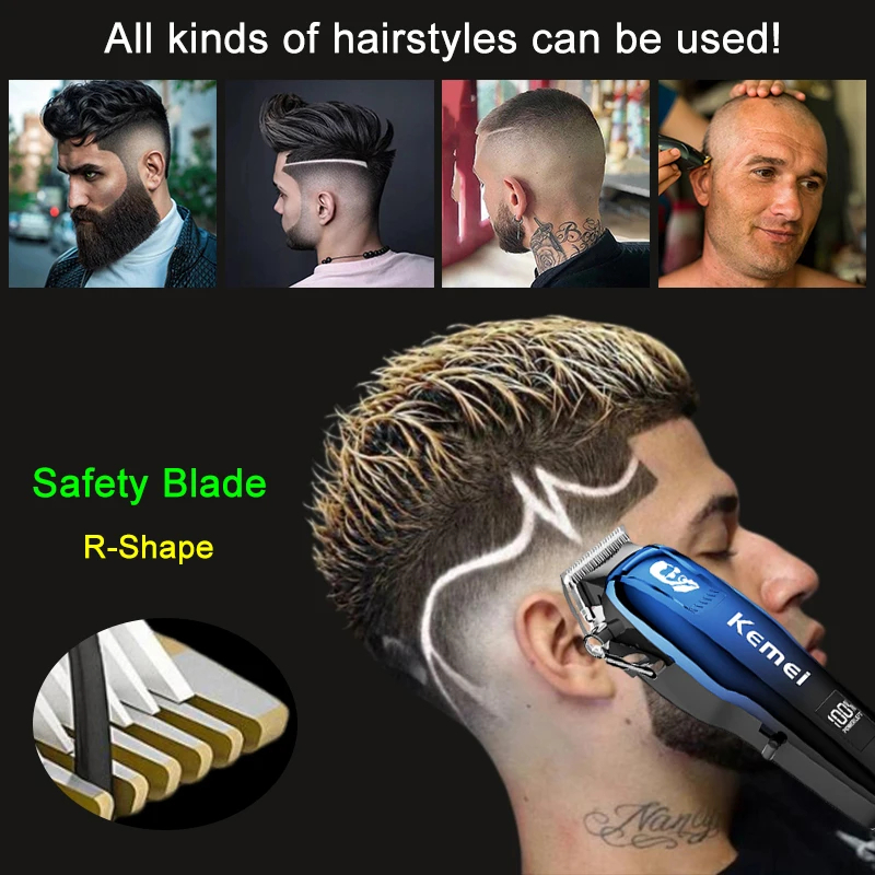 Kemei Hair Cutter Rechargeable Hair Trimmer Men 2000mAh Professional Barber Clipper Detailer Body Electric Shaver Machine