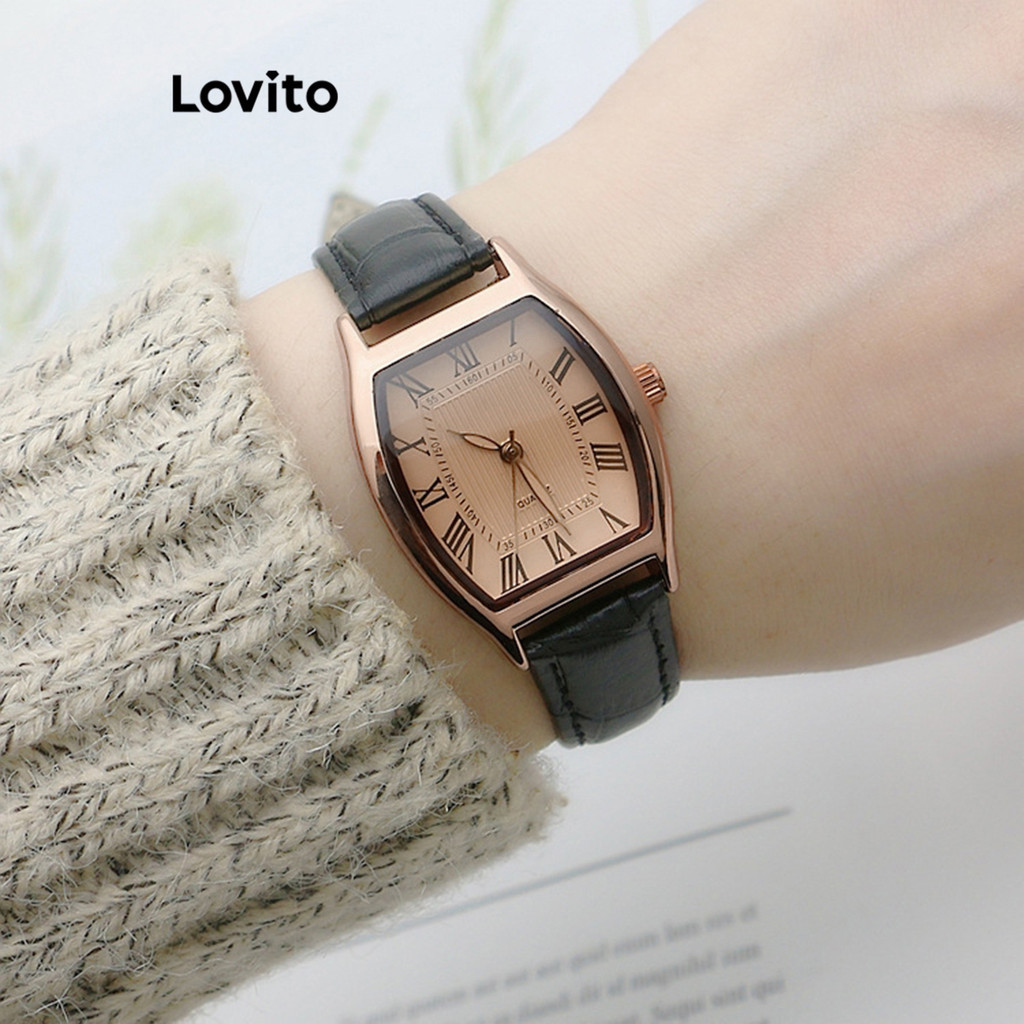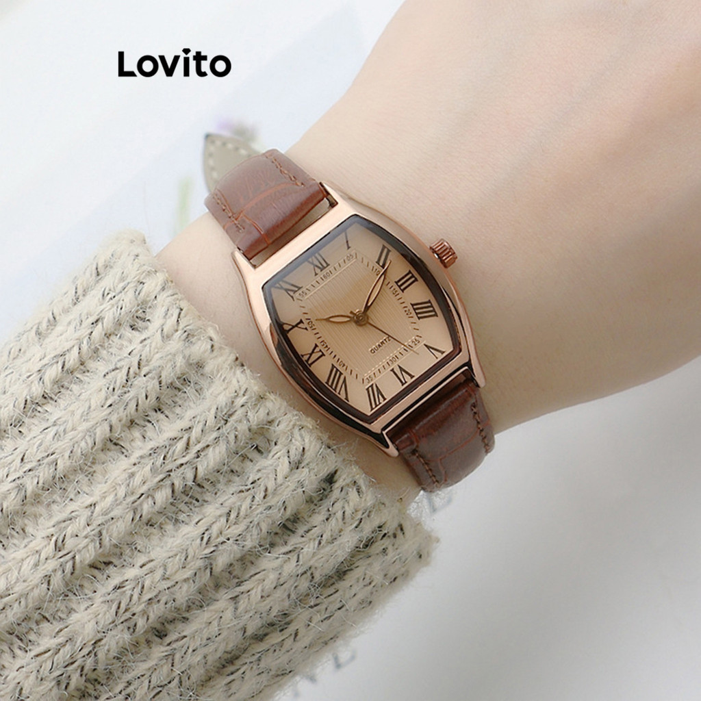 Lovito Casual Plain Basic Quartz Watch for Women L66AD056 (Coffee/Black)