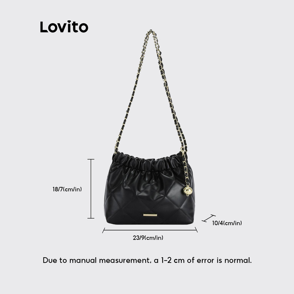 Lovito Vintage Argyle Chain Pom Small Fragrant Style High Capacity Temperament Shoulder Tote Bag for Women LFA27461