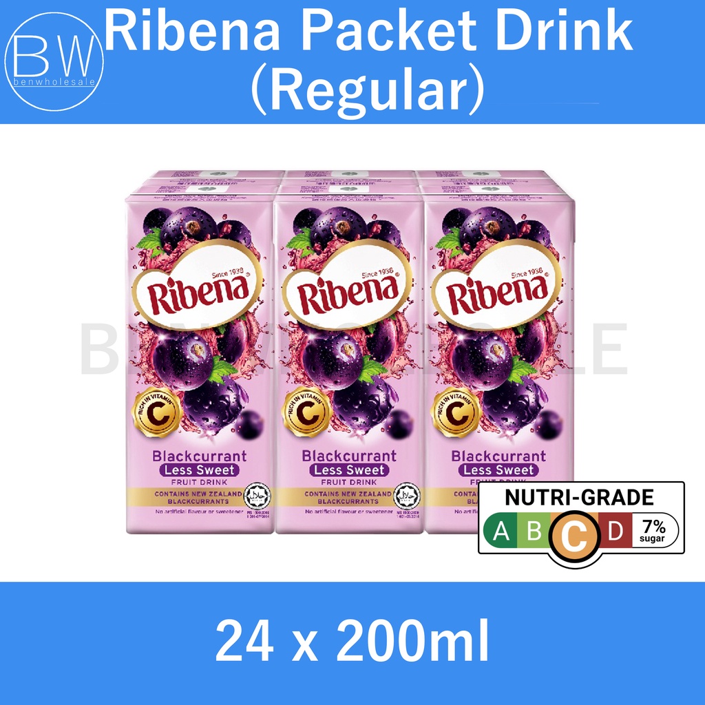 Ribena Blackcurrant Original Taste / Less Sugar (24 x 200ML) Carton
