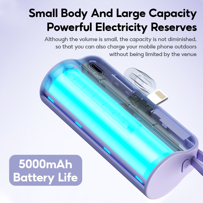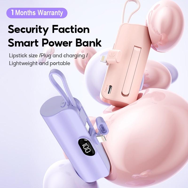 [SG Ready Stock] Mini Fast Charging Power Bank With Cable 5000mAh Portable Charger Small Powerbank For iPhone