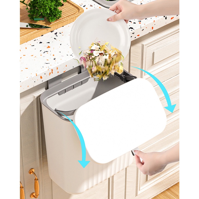 【SG Ready Stock】Hanging Waste Bin Plastic Kitchen Trash Bin With Lid