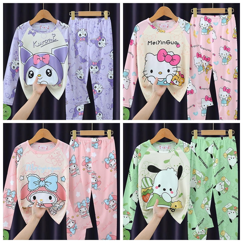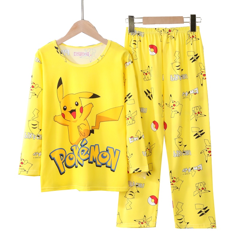 Summer Pajamas Kids Comfy Pokemon Cartoon Children Home Clothing Long Sleeve Round Neck Nightdress
