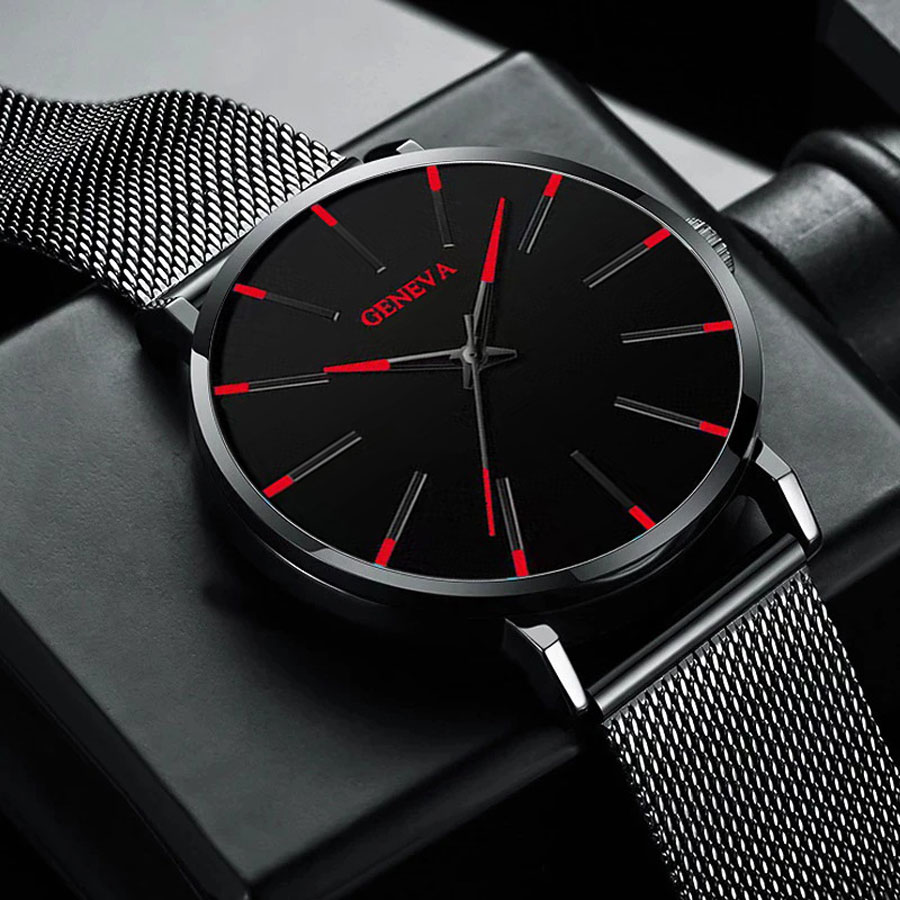 T Trendy Simple Mesh Strap Watch Men's Scale Quartz Daily Work Watch White Black New Style 2024