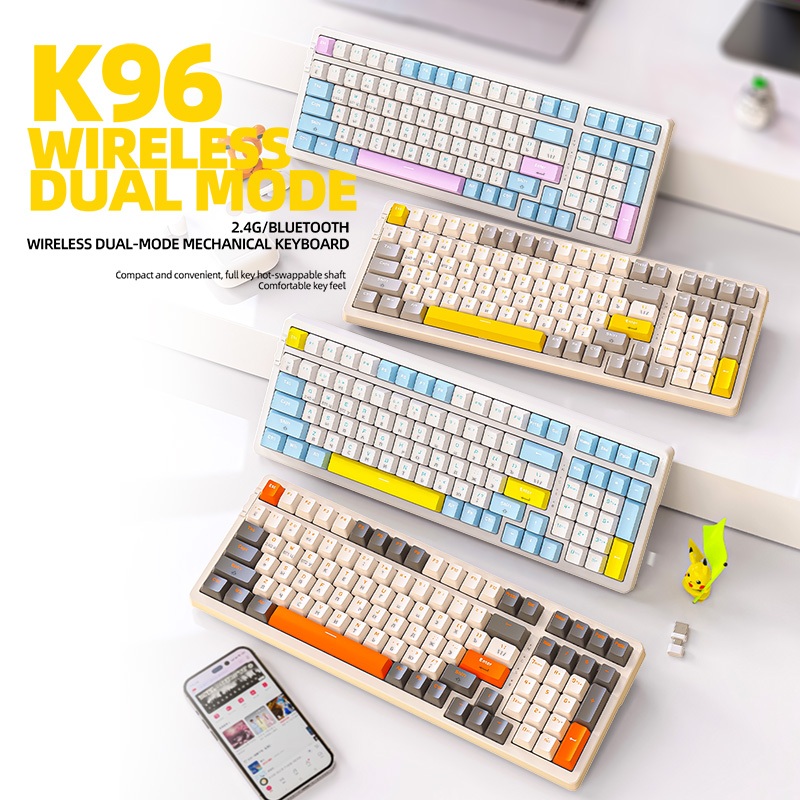 Wireless Bluetooth Mechanical Keyboard with USB-A and Type-C Dongle Insert Portable Battery 68 Keys Compact Keyboard